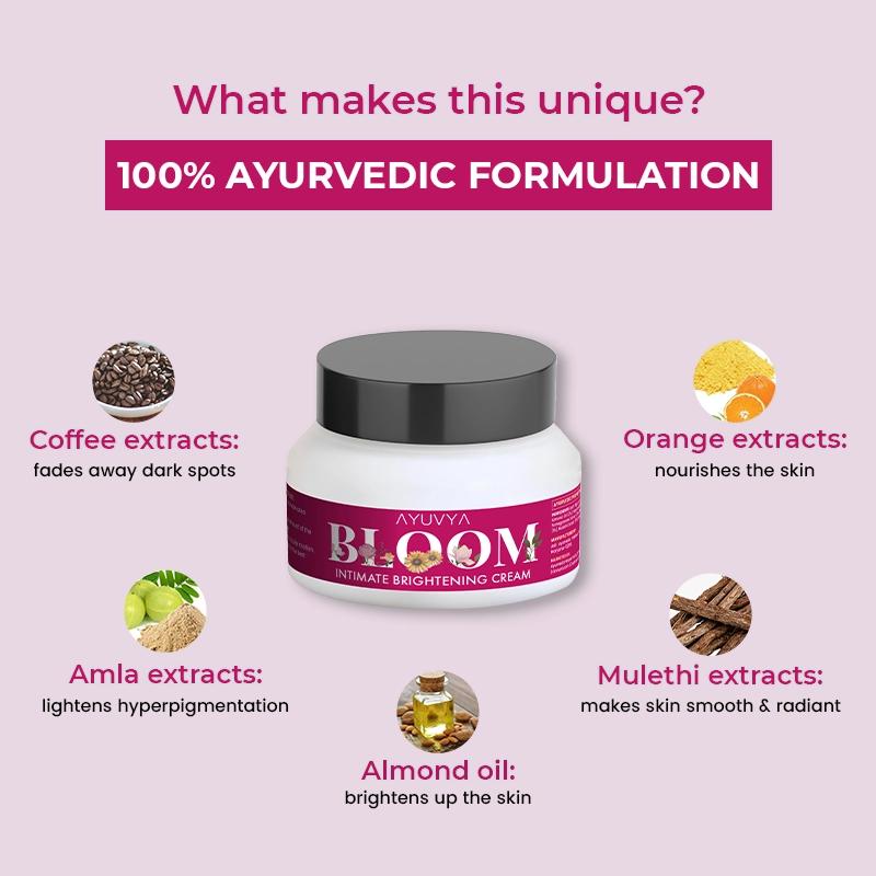 Ayuvya Bloom | Intimate Brightening Cream | 100% Ayurvedic | 50g